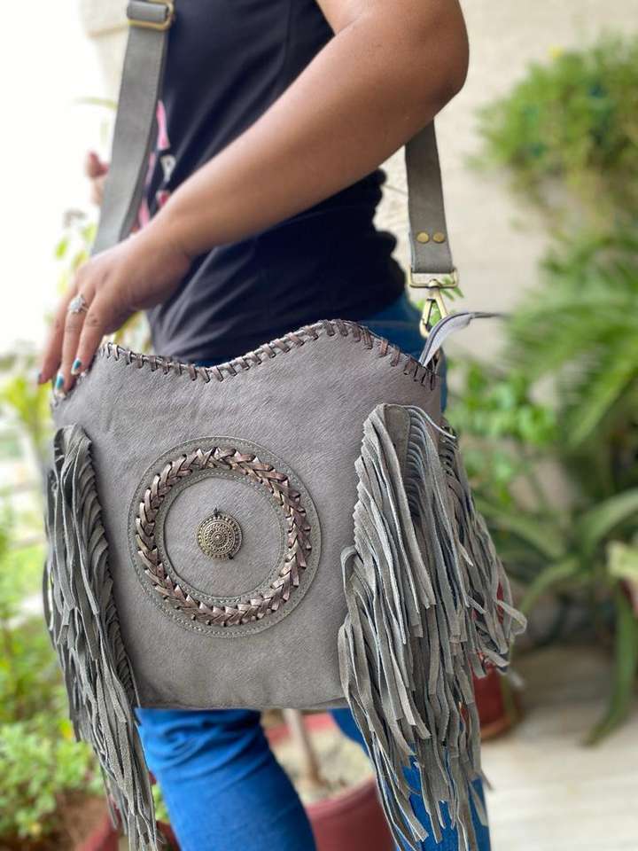 Hair On Hide Fur Suede Leather Fringe Bag