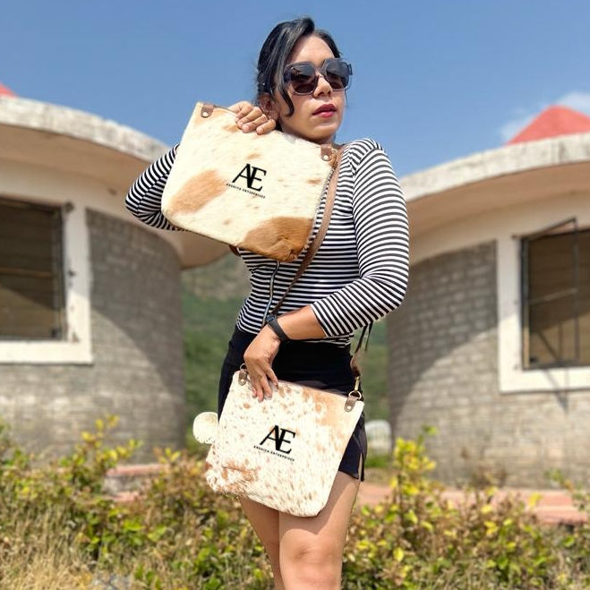 New Western Style Hair on Hide Fur Leather Crossbody Bag High Quality Fashionable Women Genuine Cowhide Fur Leather Sling Bags