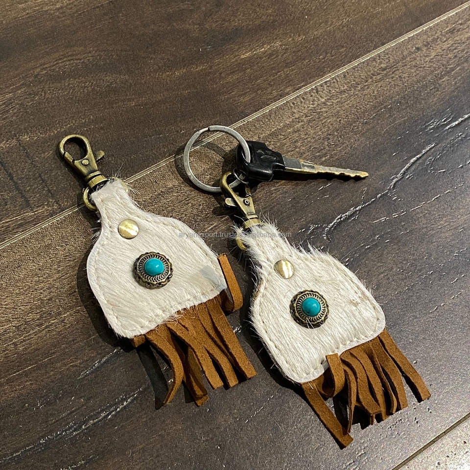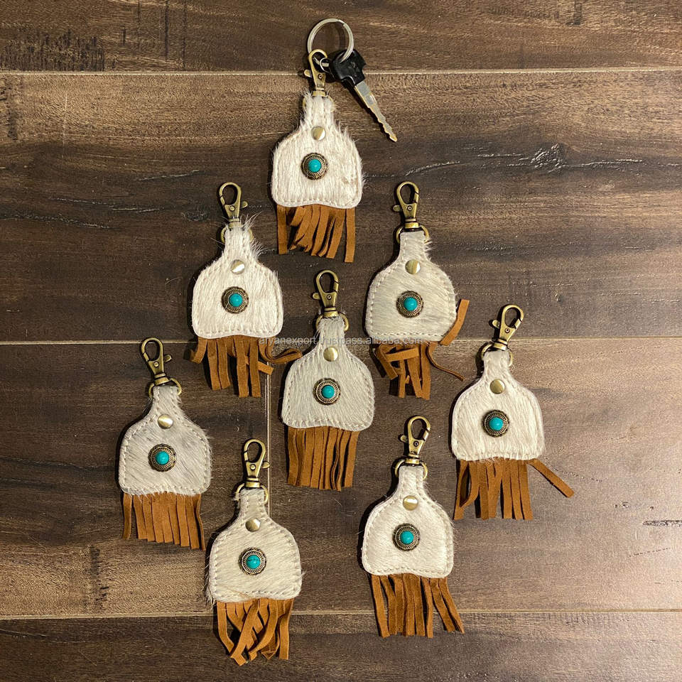 Type:Western Stylish Cowhide Leather Turquoise Fringe Key Fobs
