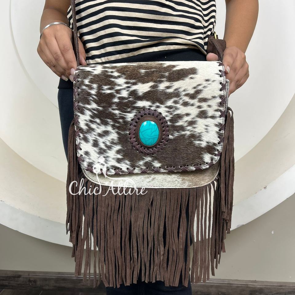 Western Style Hair on Hide Fur Suede Leather Fringe Bag