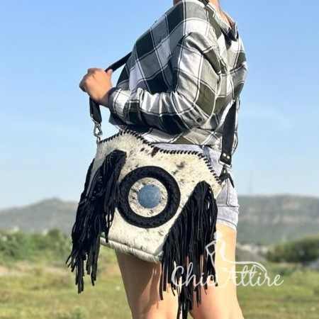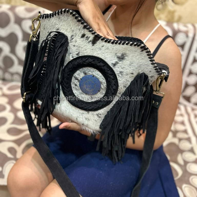 Product name:Hair On Hide Fur Suede Leather Fringe Bag