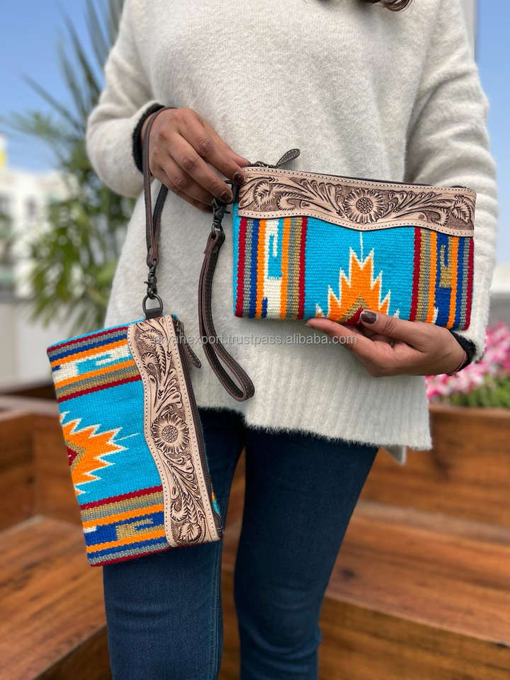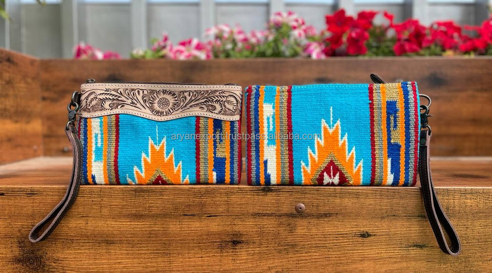 Product name:Stylish Aztec Tooled Leather Wristlet Clutch