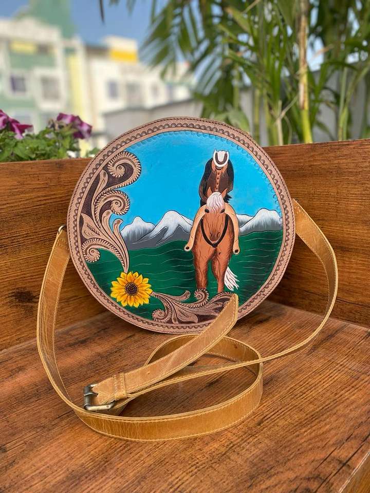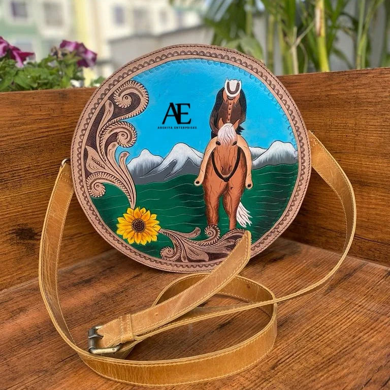Type:Trendy Hand Tooled Leather Round Sling Bag