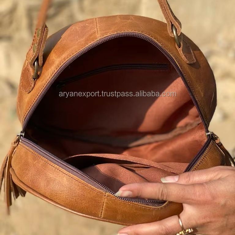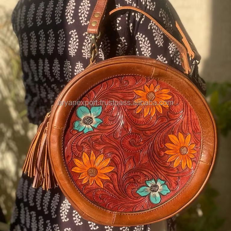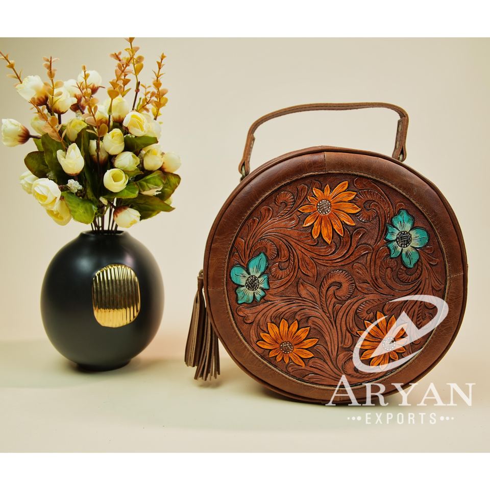 Product name:Hand Tooled Leather Round Crossbody Bag