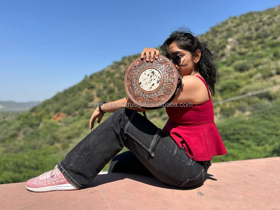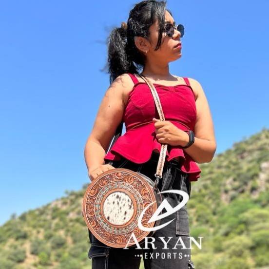 New Western Style Hand Tooling Carving Stylish Handbag Cowhide Fur Sling Bag Crossbody Shoulder Boho Bags Women's
