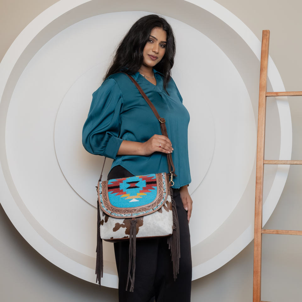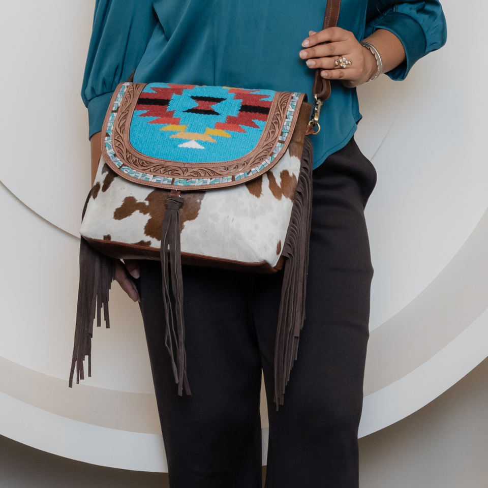 Product name:Hair On Hand Tooled Genuine Aztec Leather Handbag