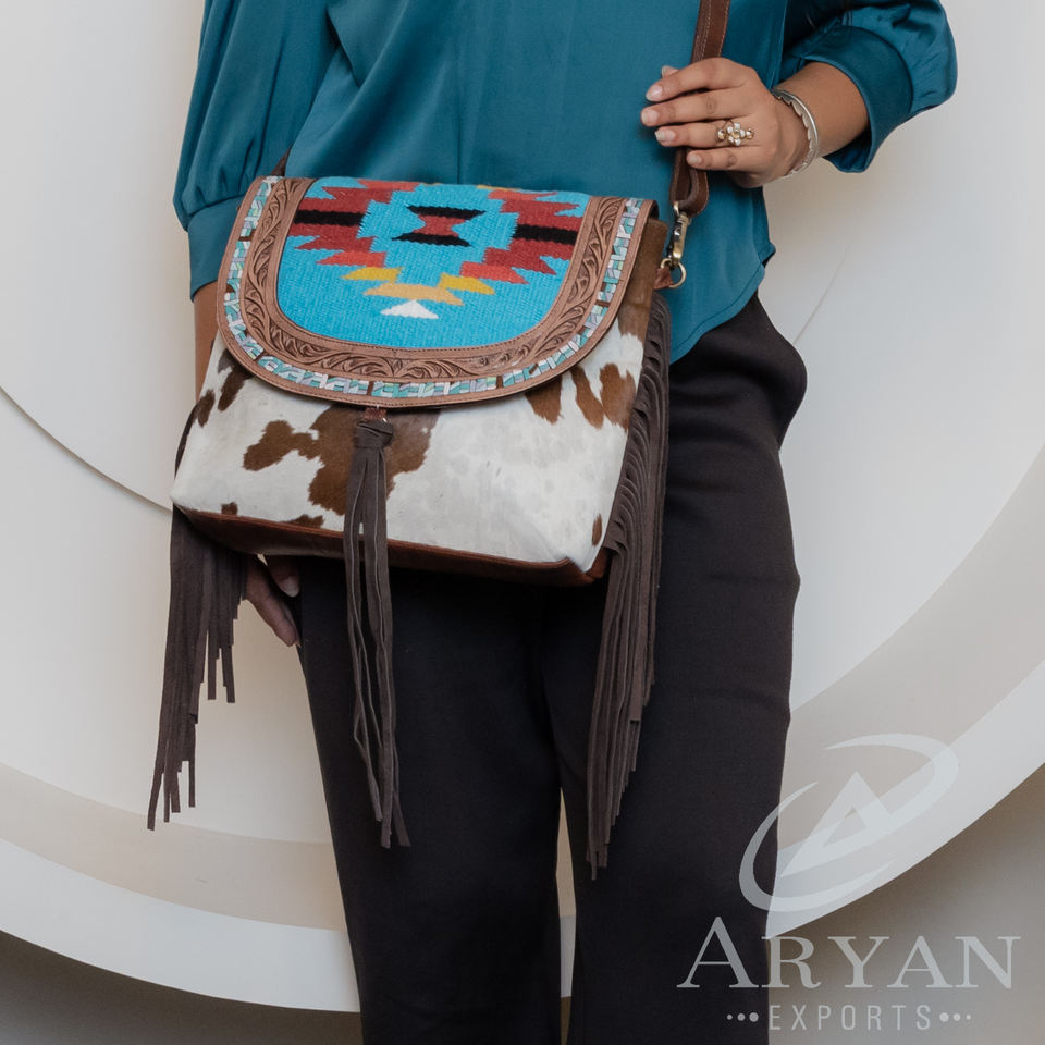 Product name:Hair On Hand Tooled Genuine Leather Handbag