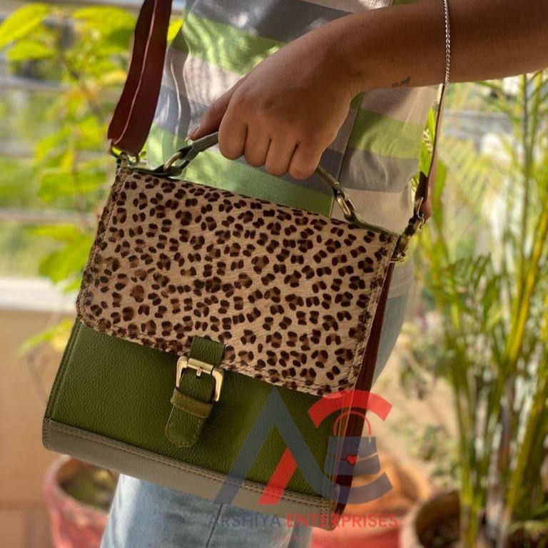 New Western Style Recycled Leather Sling Bag Stubby Color Shoulder Bag Animal Print Fur Leather Multi Color Sling Bag