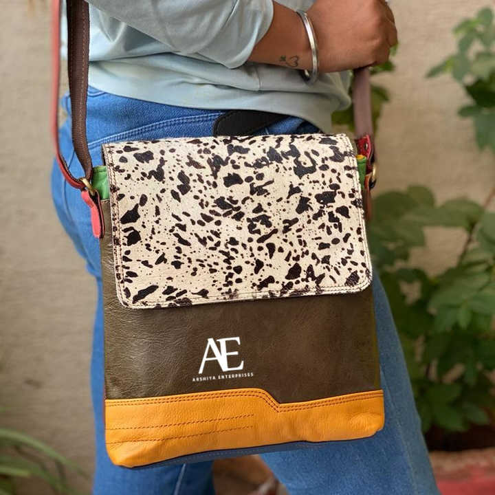 New Western Style Women Cowhide Fur Leather Bags Multi Color Handbag Recycled Leather Shoulder Sling Bag