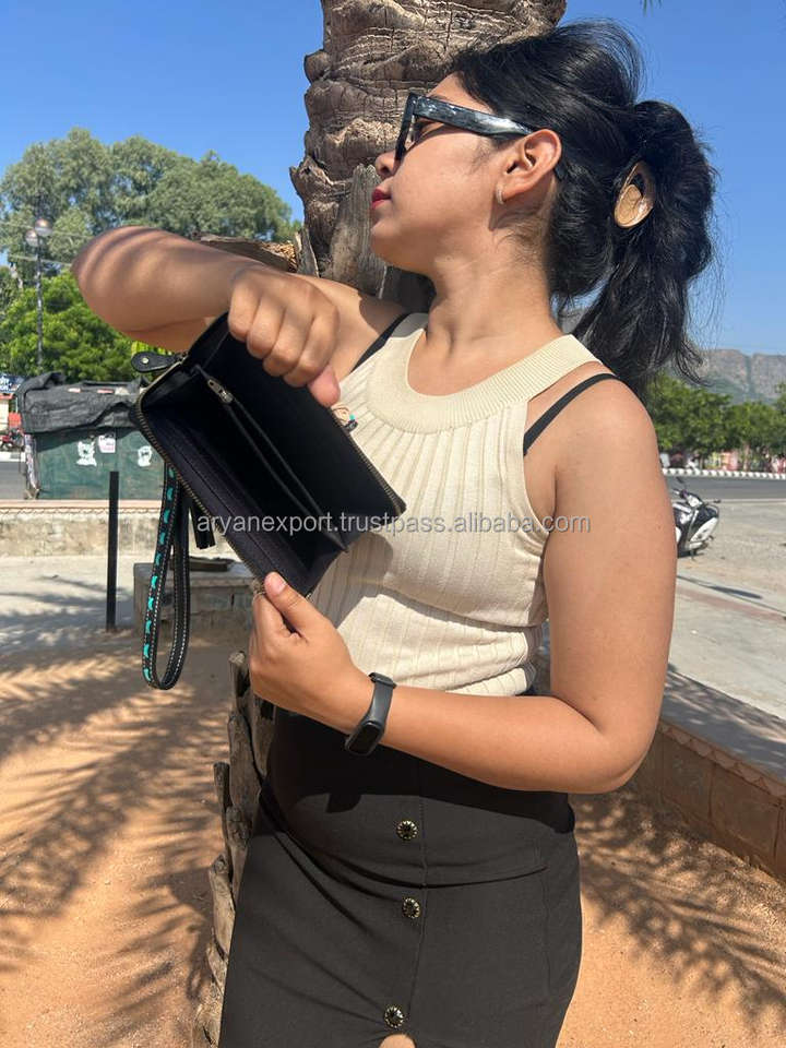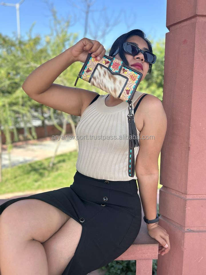 New Western Stylish Cowhide Tooled Fur Leather Wristlets Clutches Women Designed Purse Hot Selling Tooled Leather Tassel Wallets