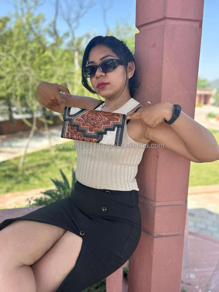 Product name:Designer Tooled Leather Clutch