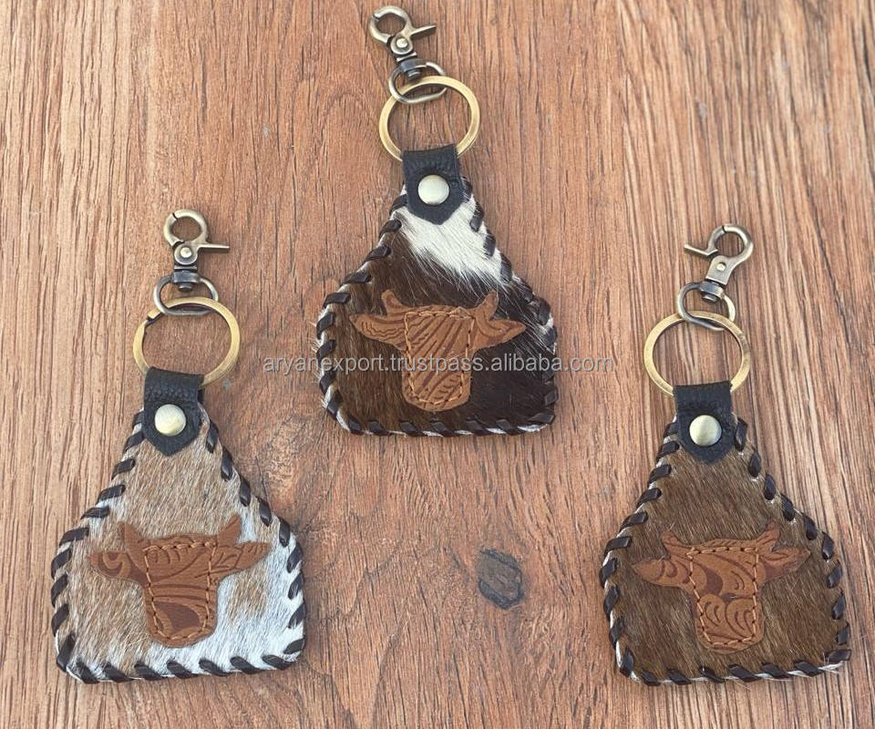 Type:Western Stylish Hair On Hide Leather Stitched Key Fob