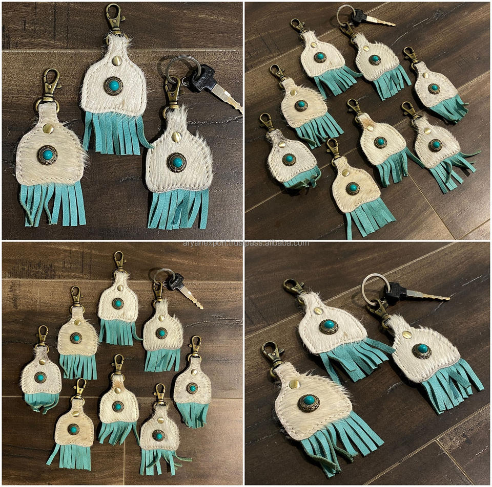 Type:Western Stylish Cowhide Leather Turquoise Stone Fringe Key Fobs