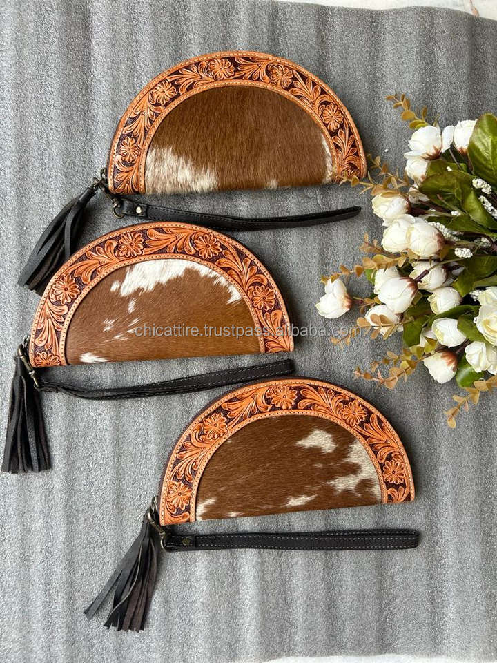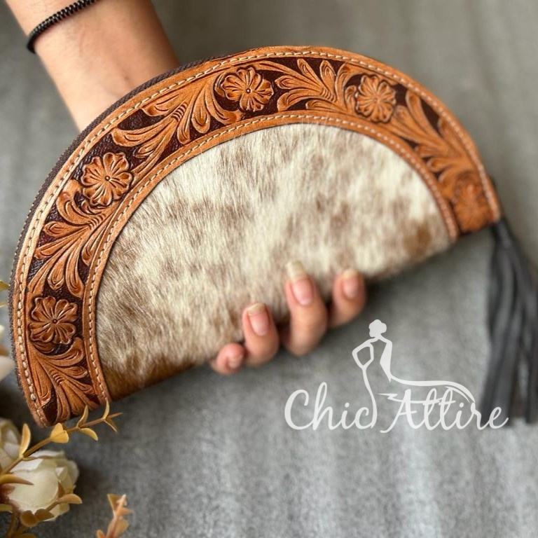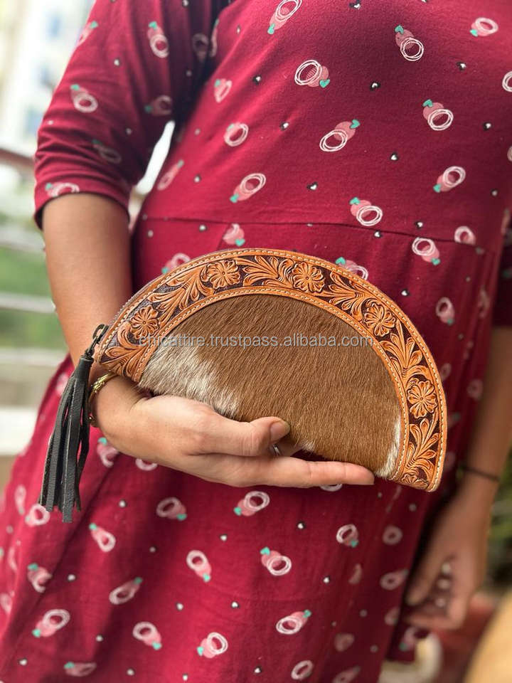 Product name:Designer Hair On Hide Color Tooled Fur Leather Clutch
