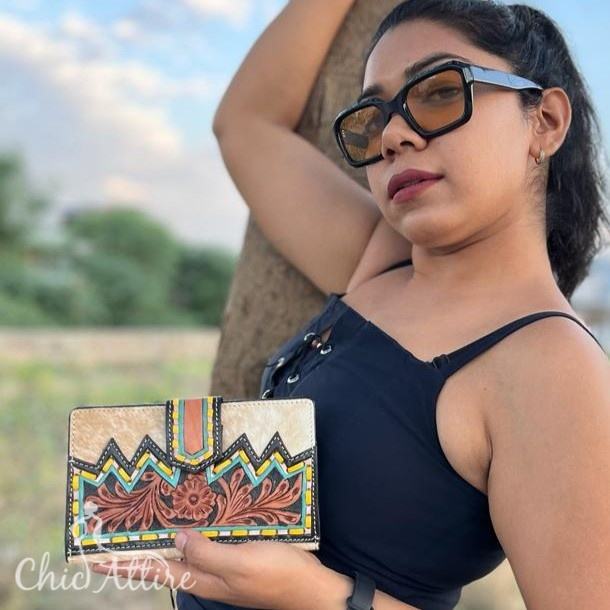 Product name:Designer Tooled Leather Clutch