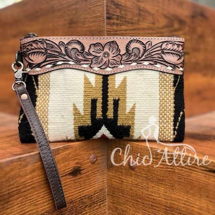 Product name:New Stylish Aztec Tooled Leather Wristlet Clutch