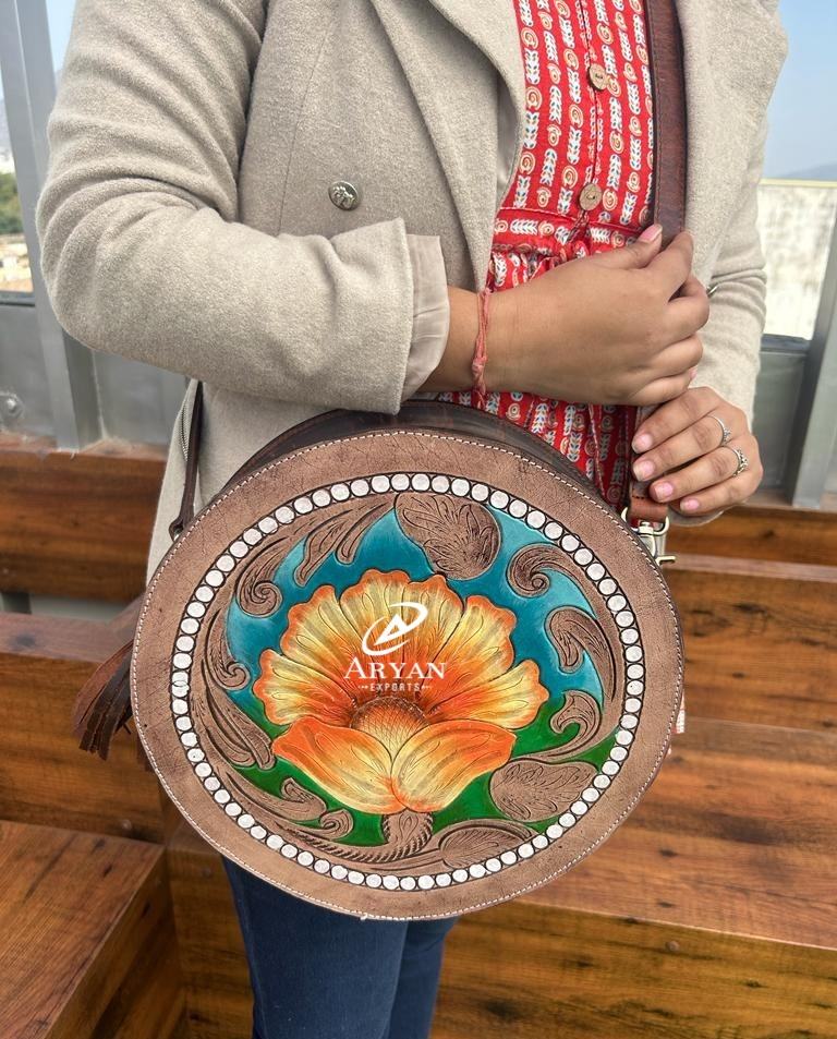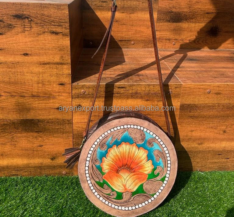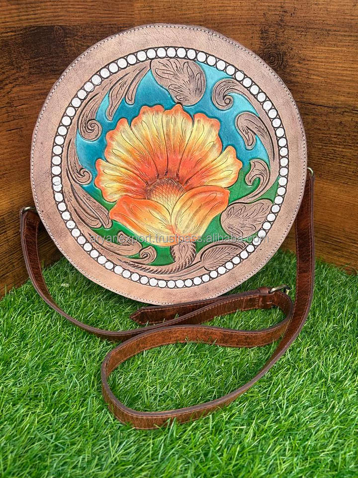 Type:Trendy Hand Tooled Leather Round Sling Bag