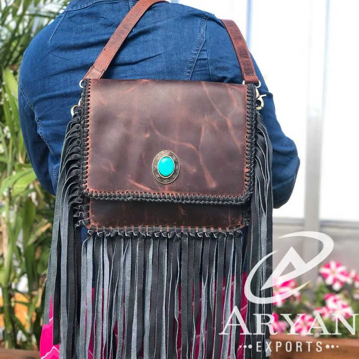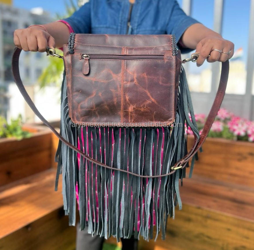New Western Stylish Handcrafted Genuine Cowhide Leather Fringe Crossbody Bag Personalized Boho Handbag Leather Sling Bags
