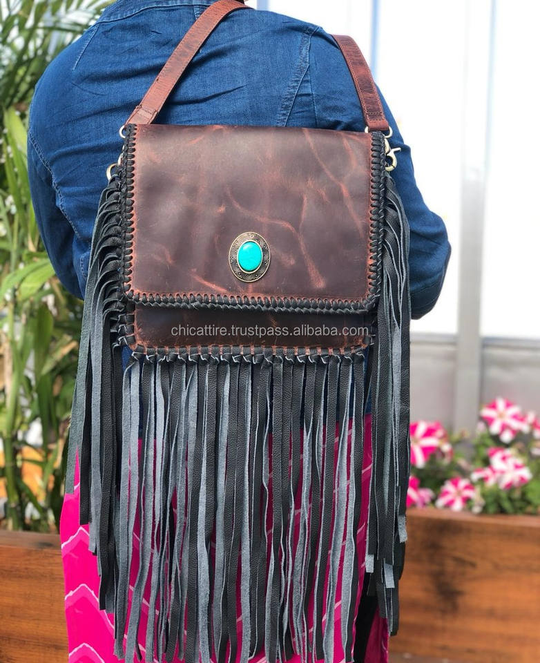 New Western Stylish Handcrafted Genuine Cowhide Leather Fringe Crossbody Bag Personalized Boho Handbag Leather Sling Bags
