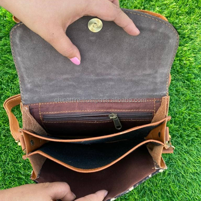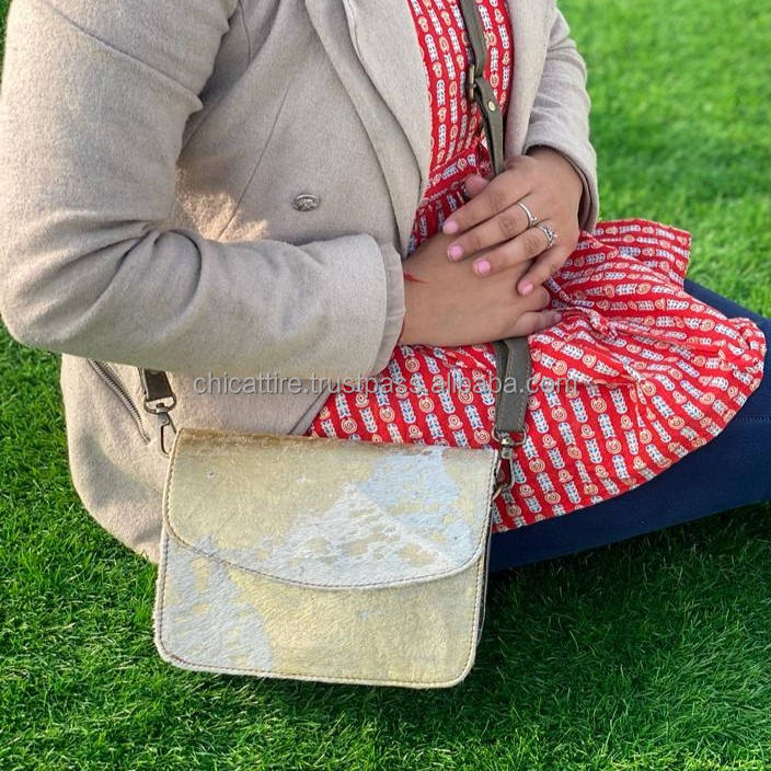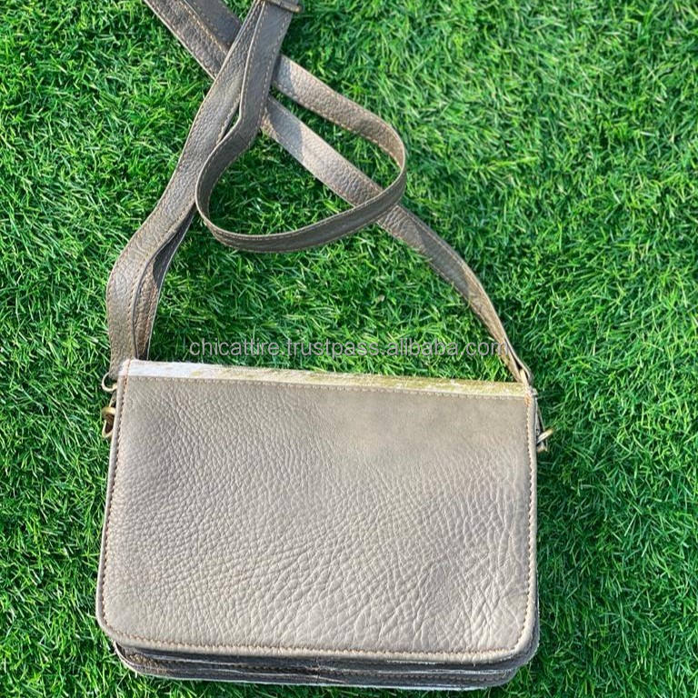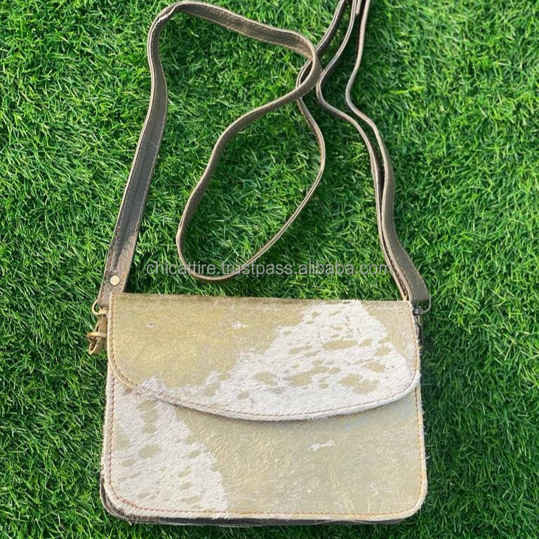 New Western Stylish Metallic Fur Leather Shoulder Bags High Quality Fashionable Genuine Metallic Fur Leather Sling Side Handbags