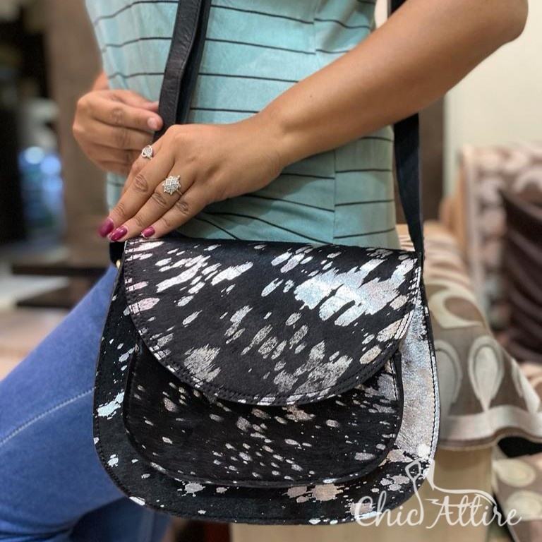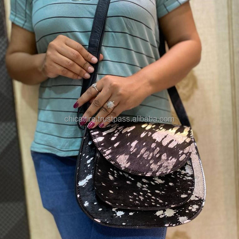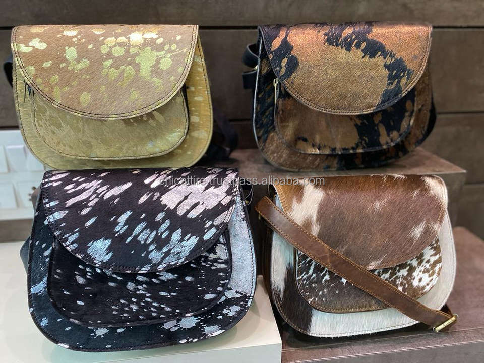New Western Stylish Metallic Fur Leather Shoulder Bags High Quality Fashionable Genuine Metallic Fur Leather Sling Side Handbags