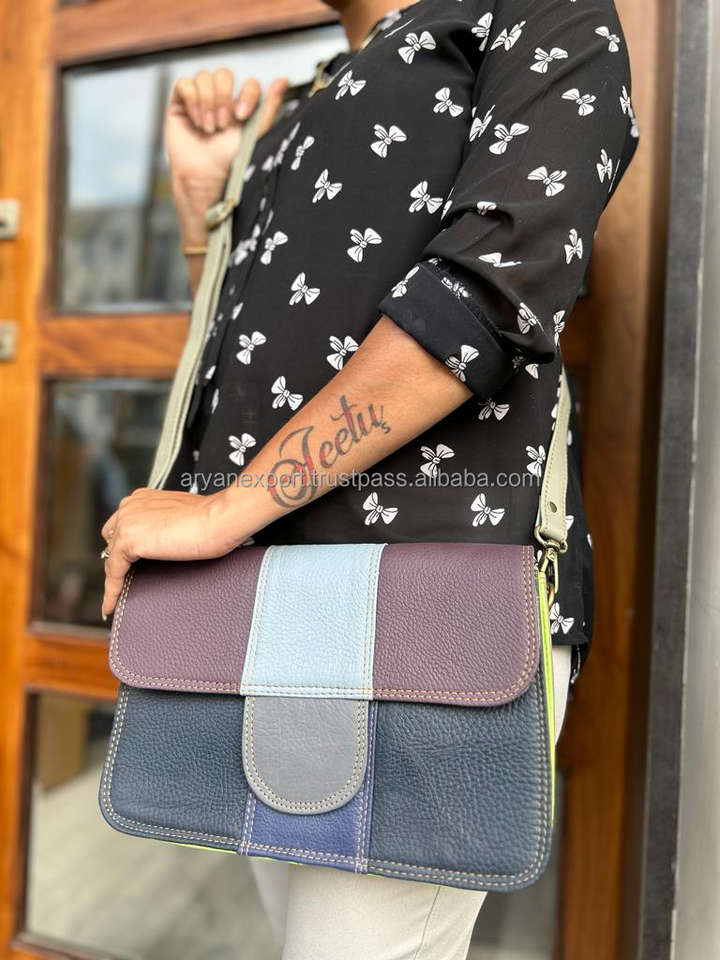 New Western Stylish Multi Recycled Leather Stubby Color Sling Bag High Quality Leather Handbag Colourful Women Side Sling Bags
