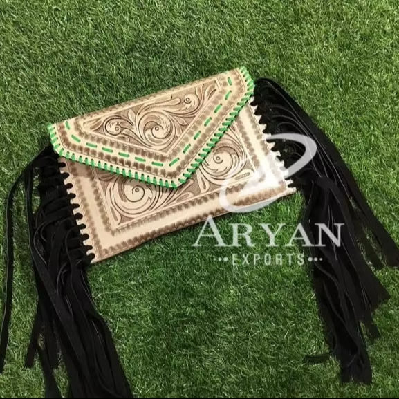 Stylish Tooled Leather Fringe Sling Bags