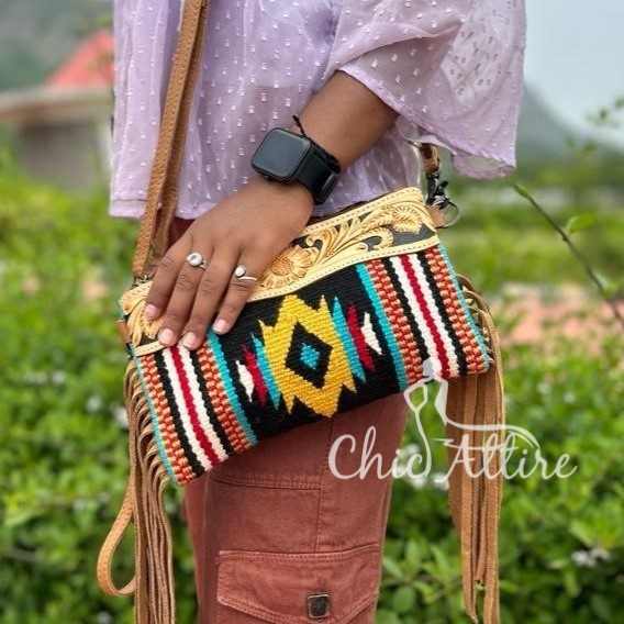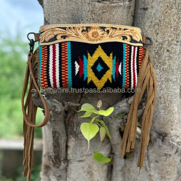 New Western Stylish Saddled Blanket Tooled Leather Sling Bags High Quality Aztec Leather Crossbody Bags Vintage Multi Color Bags
