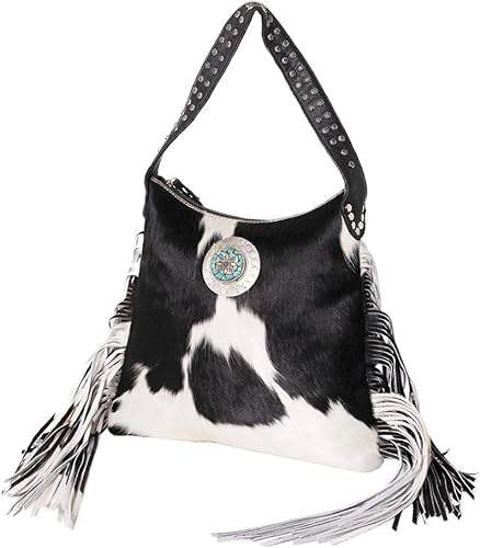 New Western Stylish Tooled Hair on Hide Fur Leather Hobo Bag Women Handcrafted Beautiful Fringe Leather Bags for Women