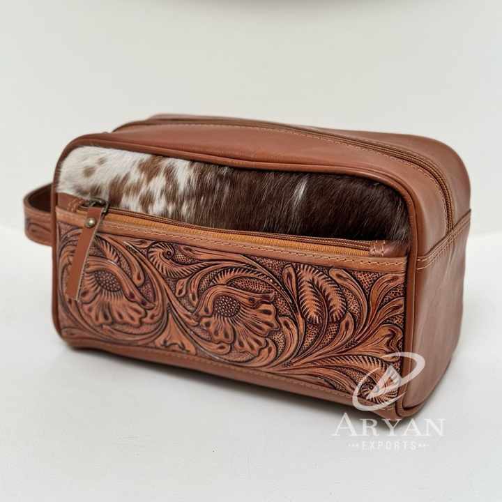 New Western Tooled Cowhide Leather Stylish Makeup Cosmetic Storage Box Hot Selling Jewelry Pouch ,Vanity Bathroom Organizer Box