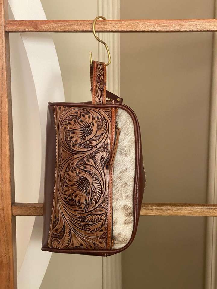 Product name:Hair On Tooled Leather Women Makeup Bag