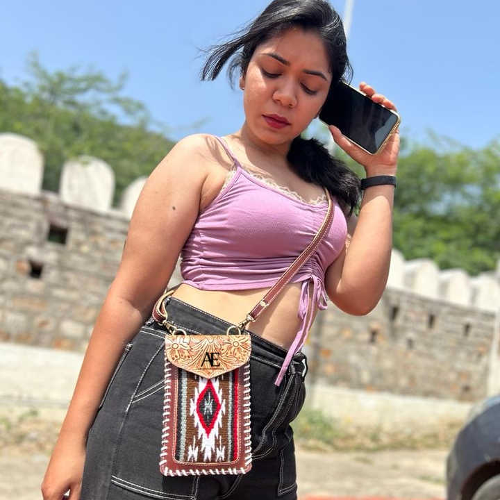 New Western Tooled Jacquard Leather Phone Crossbody Sling Purses Vintage Multi Aztec Fabric Unique Quilted Small Wristlet Purses