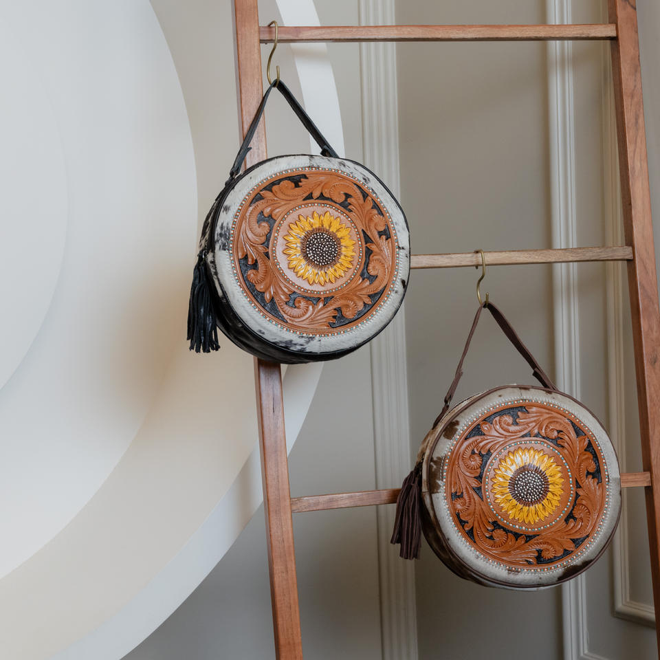 New Western Tooled Real Cowhide Leather Canteen Bags Handcrafted Round Shape Handbag Women Genuine Leather Shoulder Sling Bags