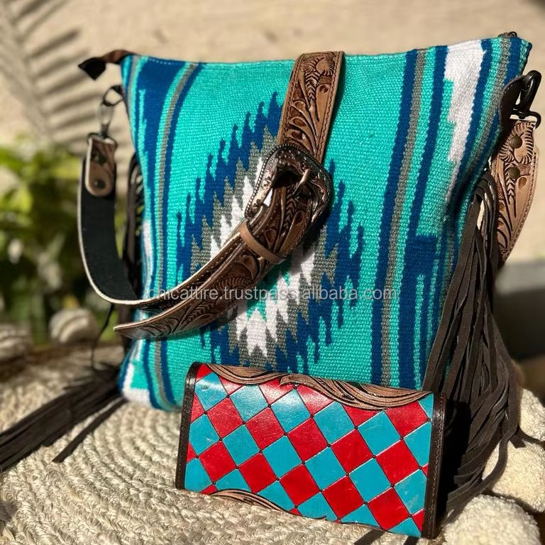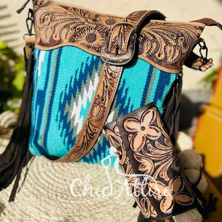 Product name:Vintage Tooled Aztec Leather Handbag & Wallet Combo Set