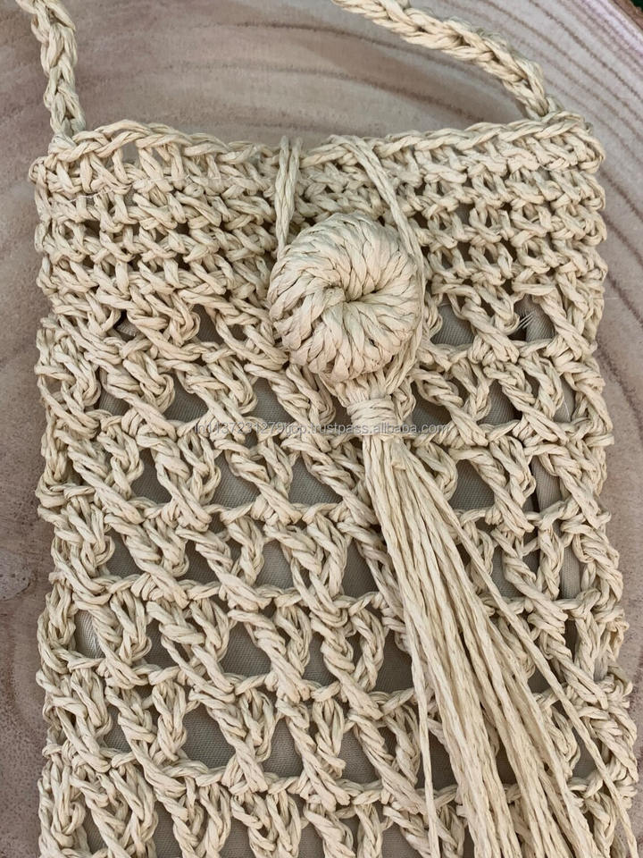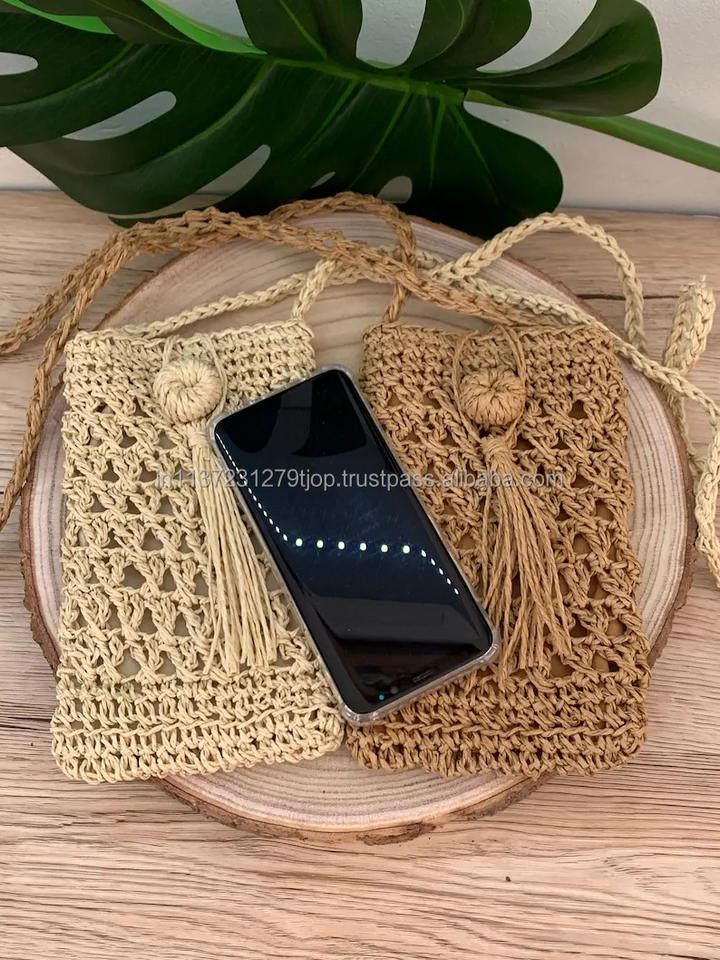 New Western Women Macrame Phone Purse Summer Beach Straw Bags Hot Selling Custom Bohemian Handmade Handbag Sea Grass Beach Bags