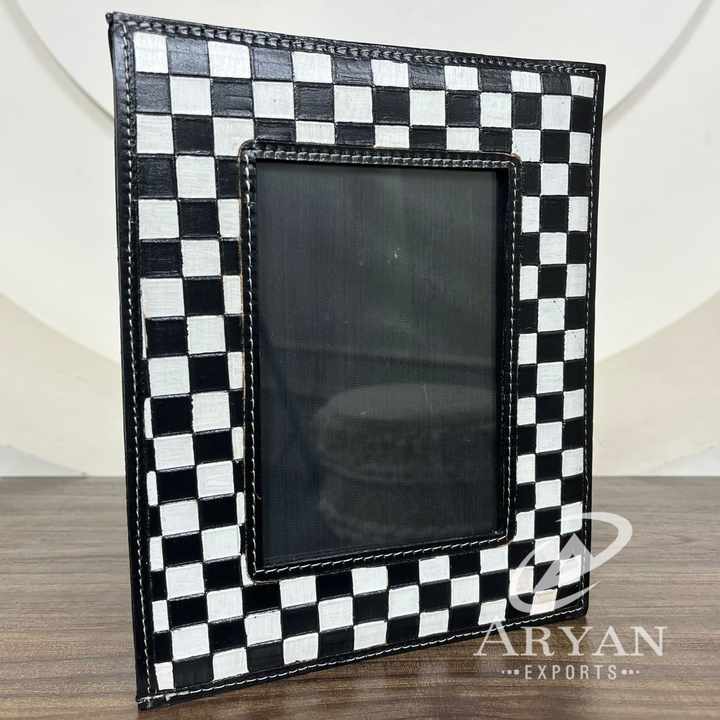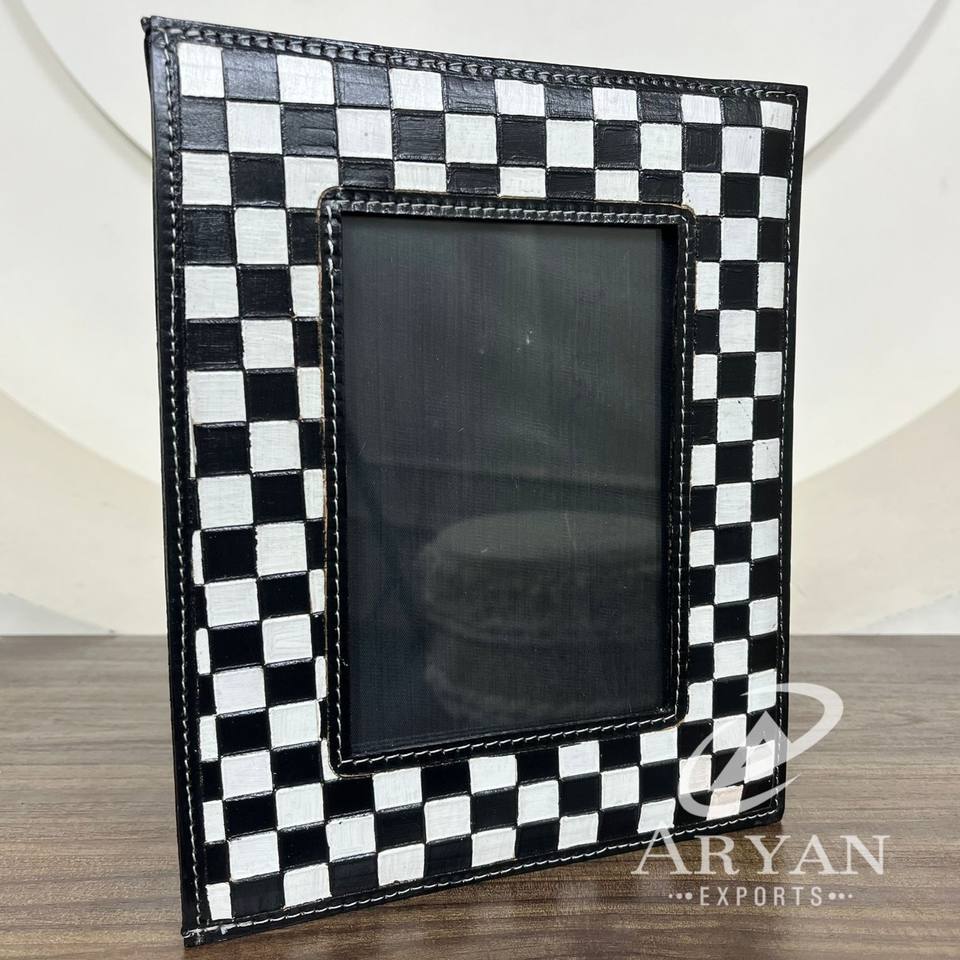 Product Name:Hand Tooled Checkered Leather Picture Photo Frame