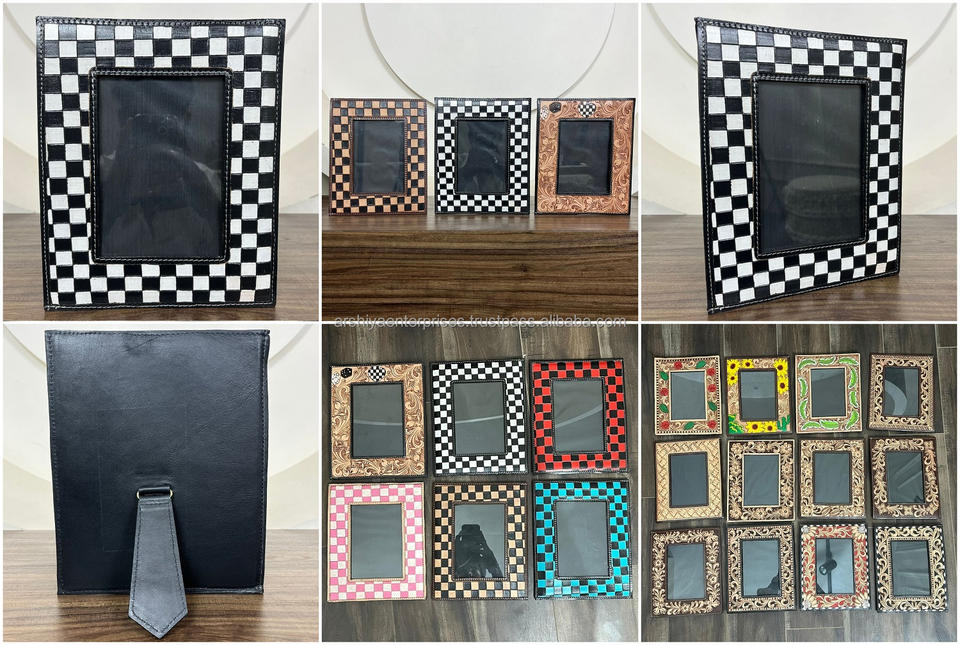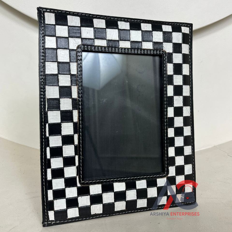 Product Name:Hand Tooled Checkered Leather Picture Photo Frame