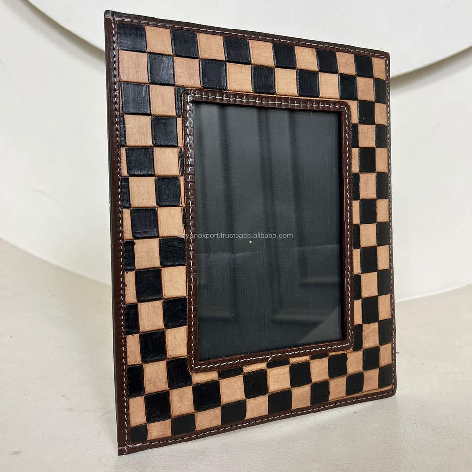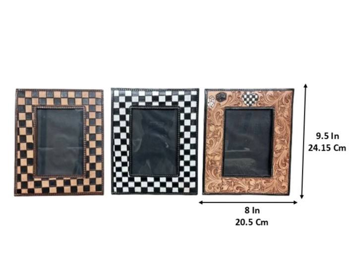 Product Name:Hand Tooled Checkered Leather Picture Photo Frame