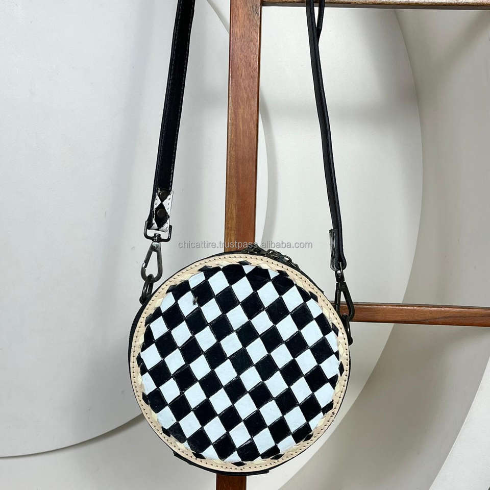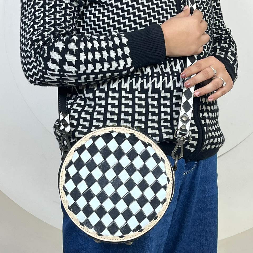 Product name:Checkered Leather Round Shoulder Crossbody Bag