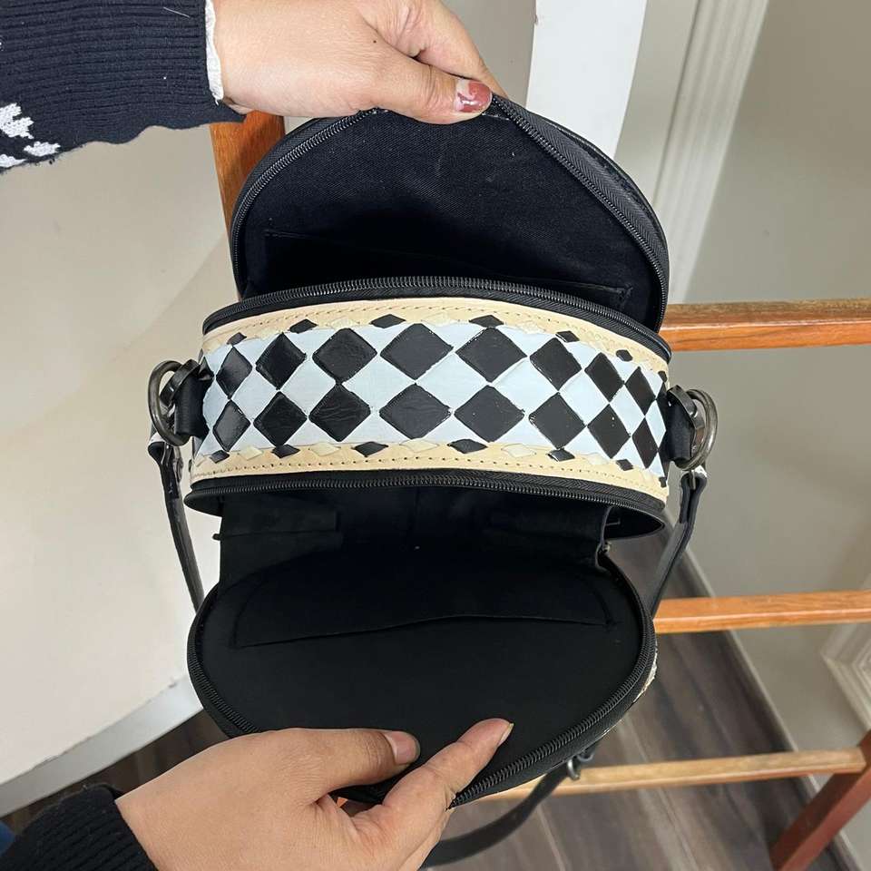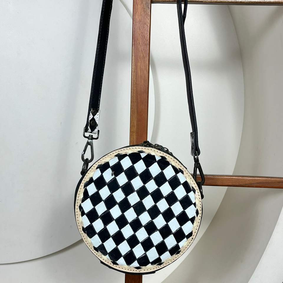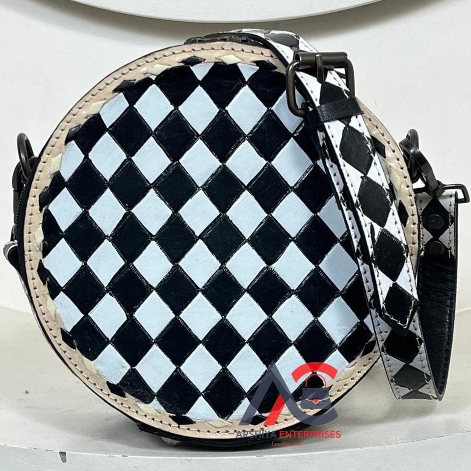 Type:Checkered Leather Round Shoulder Crossbody Bag
