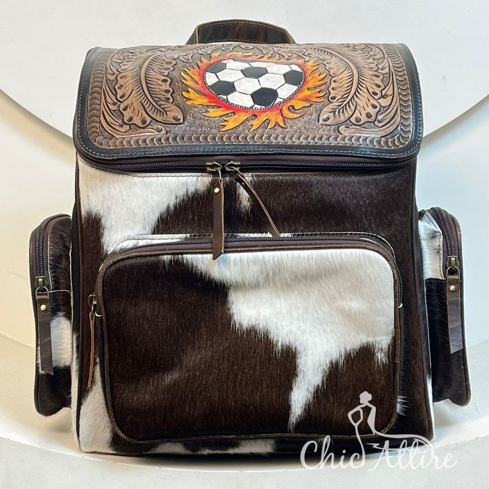 Hand Tooled Cowhide Leather Custom Multifunctional Diaper Bag