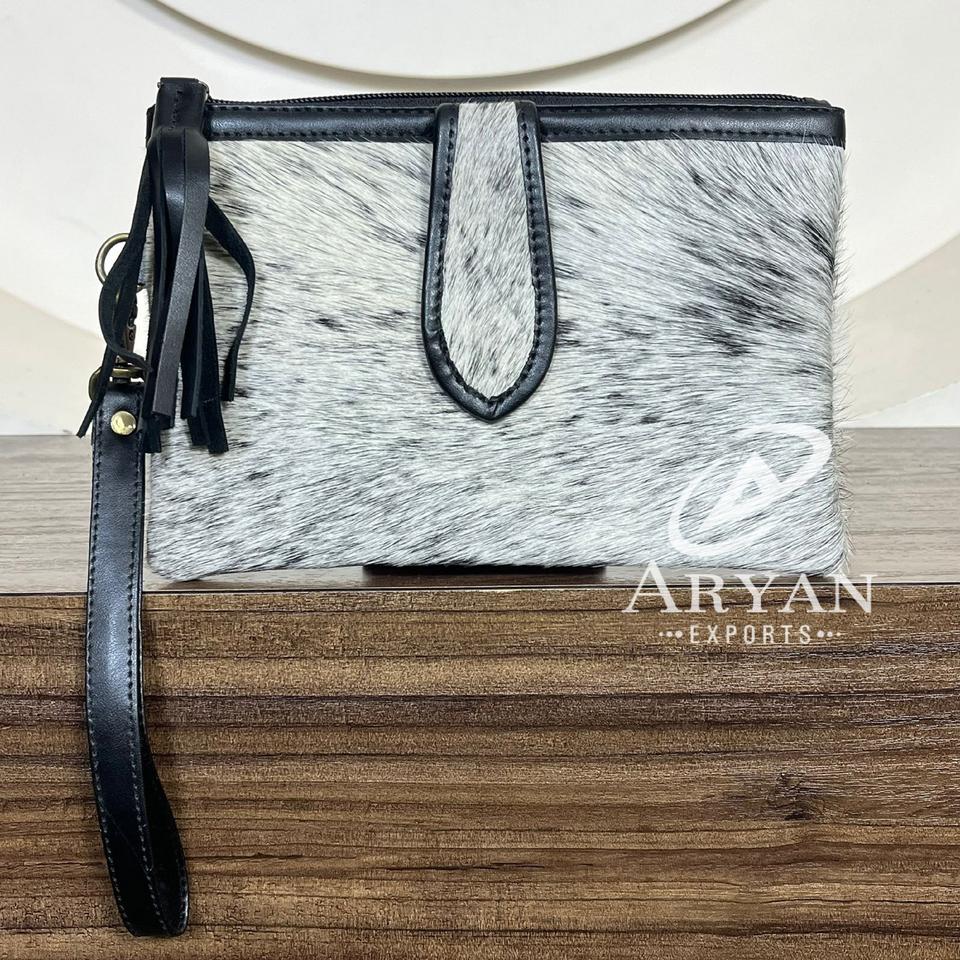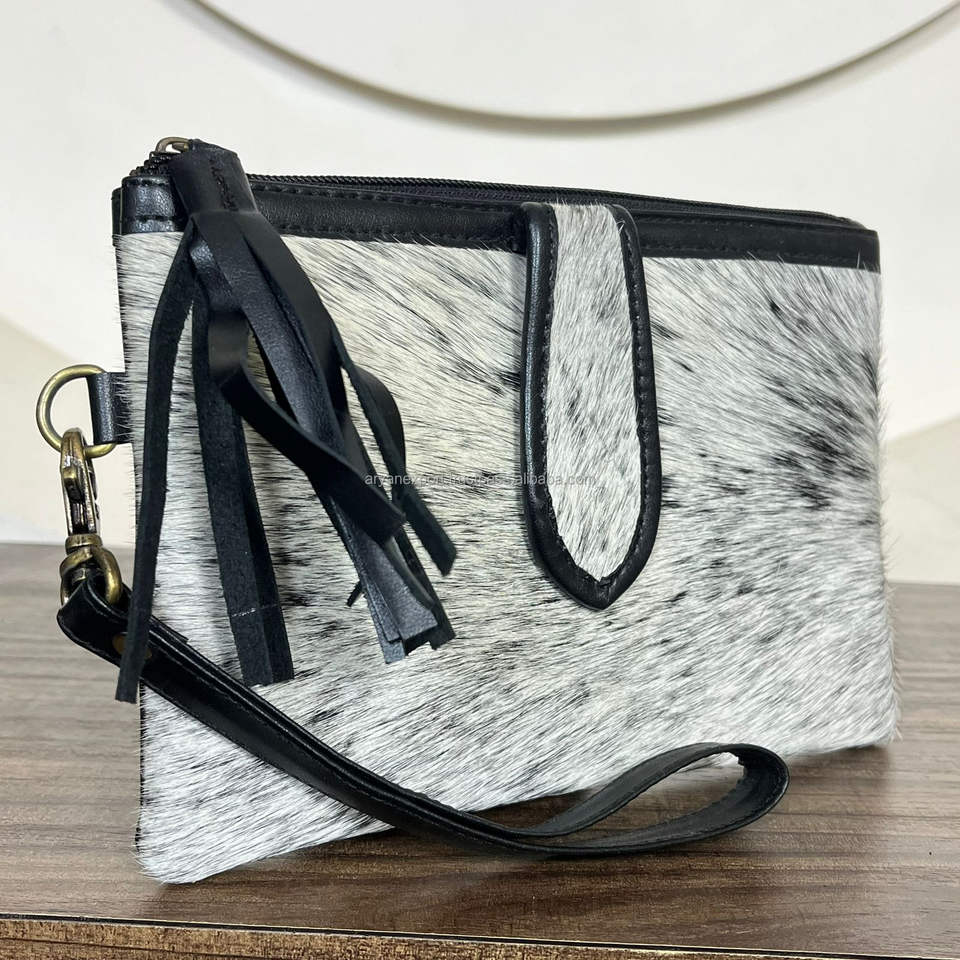 New Wholesale High Quality Hair On Cowhide Leather Wristlet Clutch for Women Real Genuine Leather Credit Card Holder Phone Purse