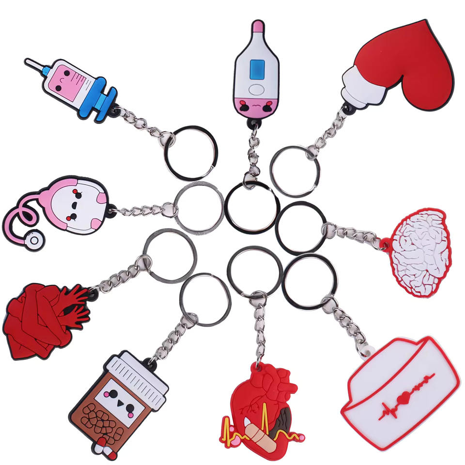 New Wholesale Nurse 2D Soft PVC Rubber Customized Medical Designer Keychain Cartoon Key Rings Accessories by RAW to FINE