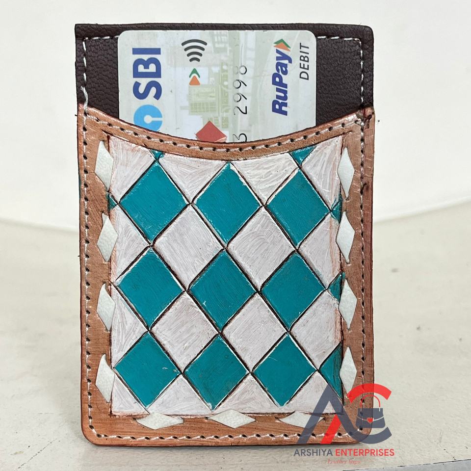 New Wholesale OEM Custom Handmade Genuine Leather Pocket Card Holder Western Boho Style Hand Tooled Checkered Card Sleeve Wallet