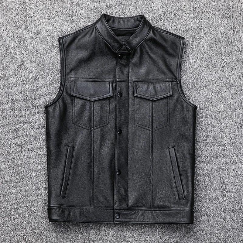 New Wholesale Stylish Waistcoat Premium Design Cowhide Cut Vests For Men Streetwear Fashion Genuine Leather Vest