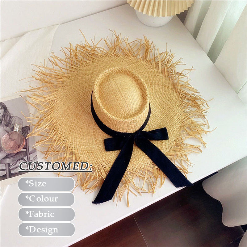 New Wholesale Summer Wide Brim Sun Hat Raffia Straw Foldable with Ribbon Plain Style for Travel