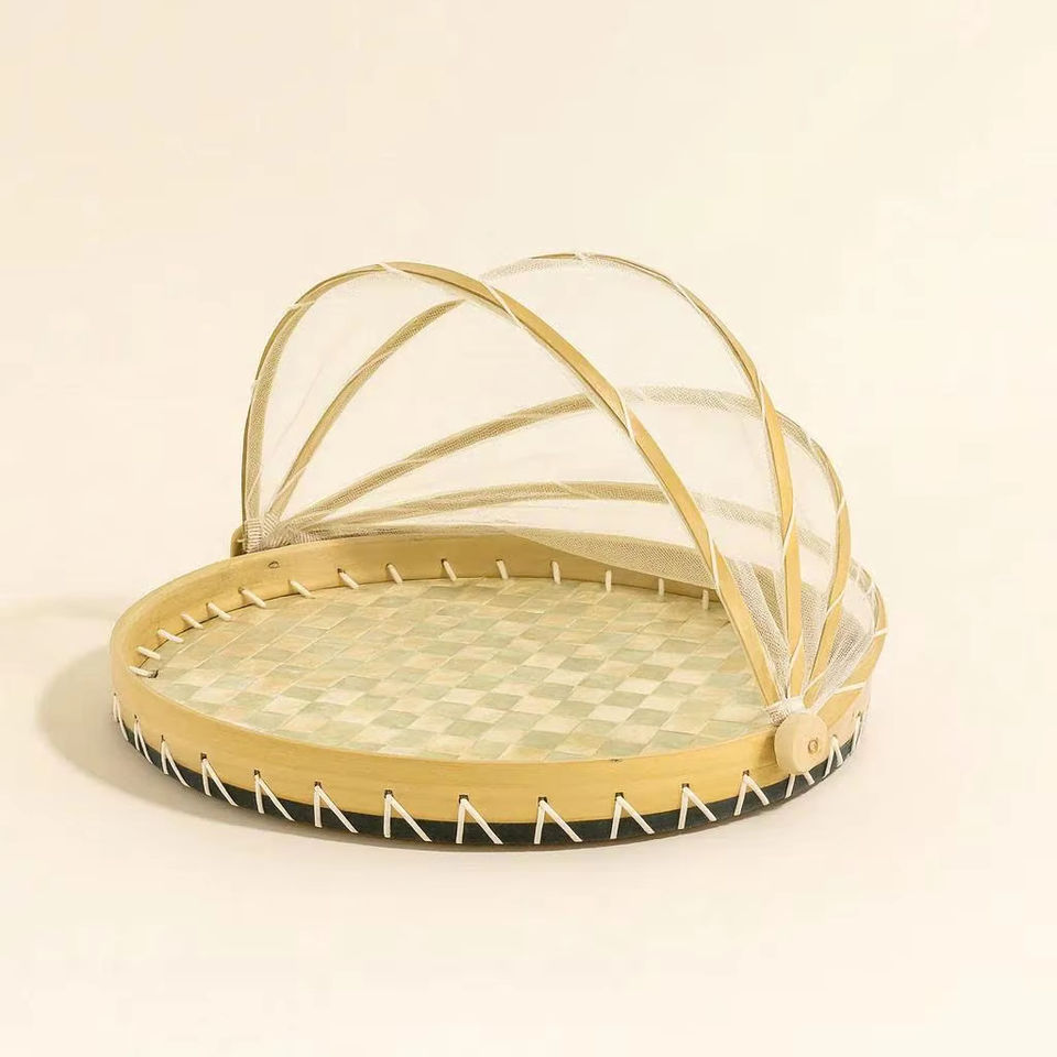 New Wicker Food Dome Rattan And Mother Of Pearl Inlay Food Cover With Mesh Handmade Serving Tray With Lid For Dining Table Decor
