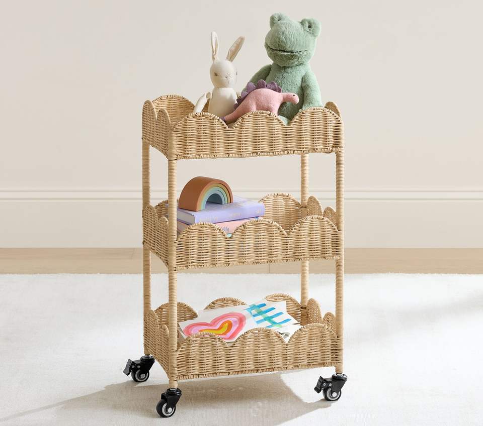 New Wicker Storage Cart Handwoven Three Layer Trolley With Wheels Decorative Rattan Organizer Shelf For Baby Nursery And Home