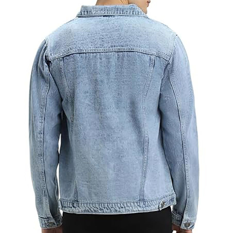 New Winter Fashion Solid Blue Men's Casual Style Denim Jacket Large Size 100% Cotton Stand Collar Personality Touch Canvas