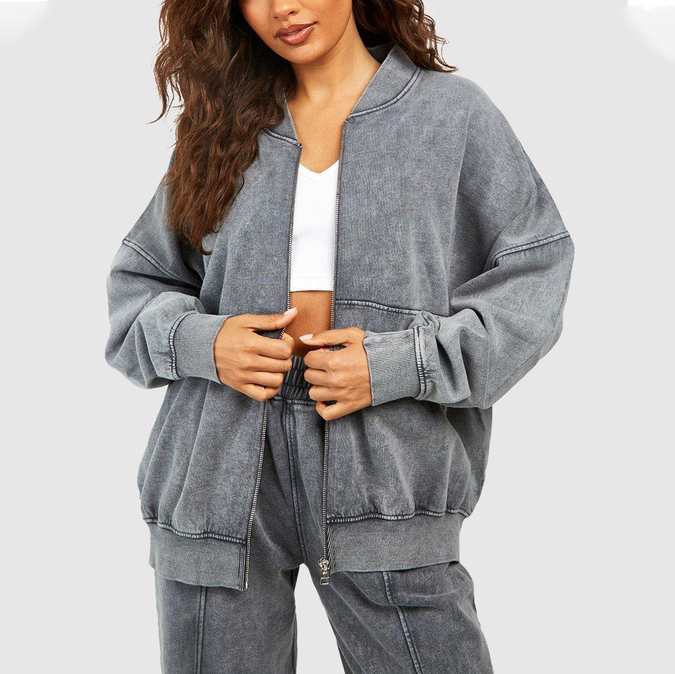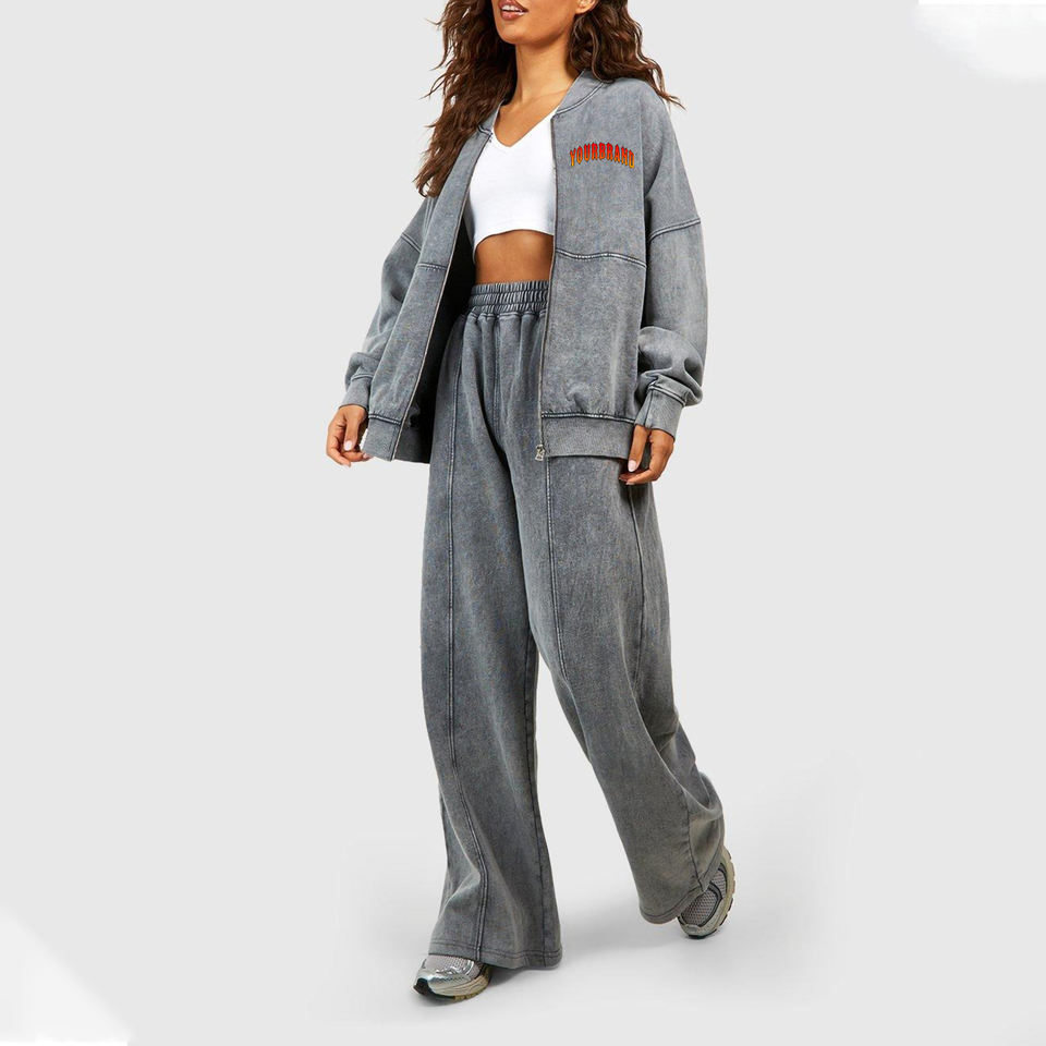 New Winter Solid 100% Cotton Full Zip Hoodie & Baggy Sweatpants 2-Piece Women's Tracksuit Set